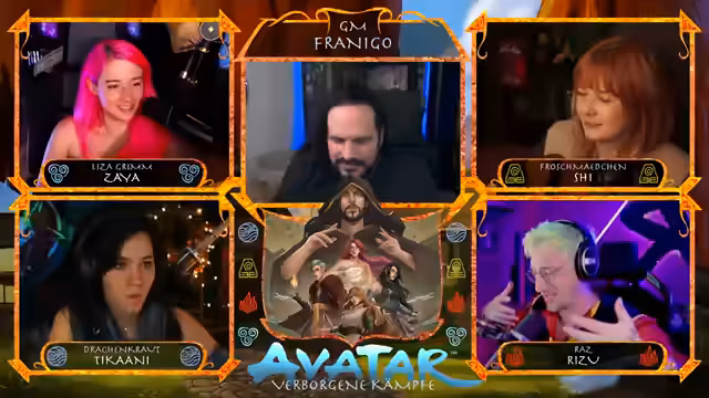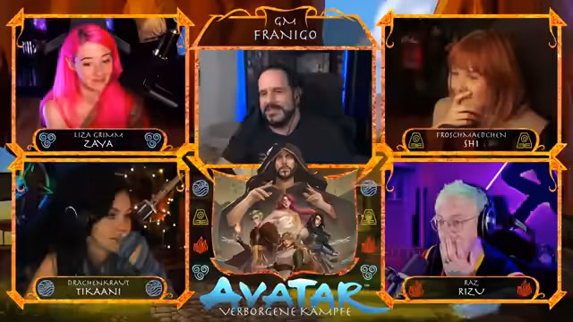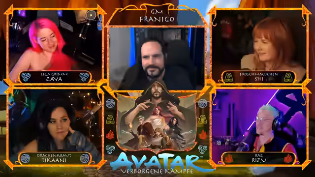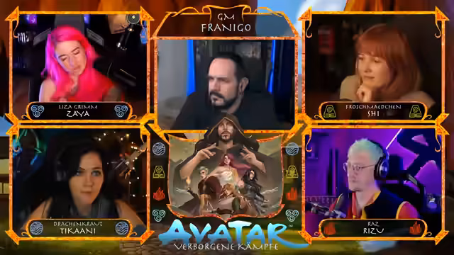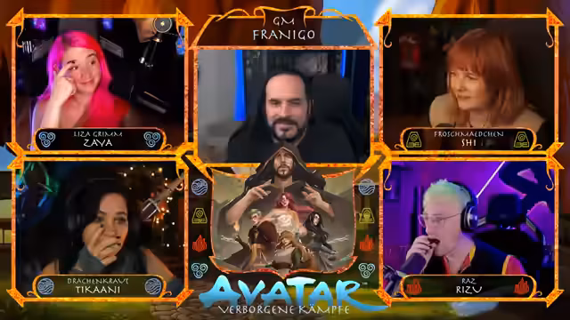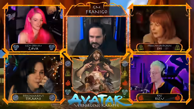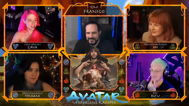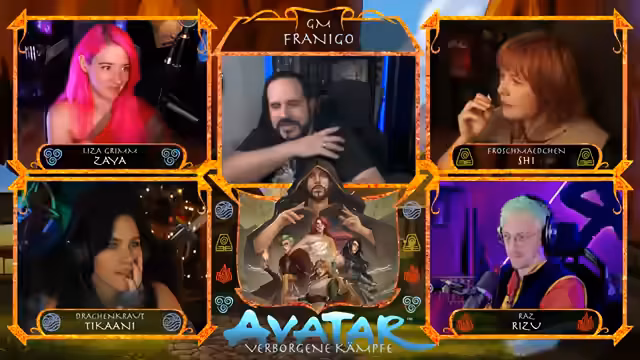 05:46:58Es erfolgt eine Zusammenfassung des bisherigen Verlaufs des Pen & Paper Abenteuers. Die Gruppe befindet sich in der Nähe von Shis Heimatdorf und hat sich mit Kriegsherjow auseinandergesetzt, wobei sie Admiralin Niyahita als Verbündete gewonnen haben. Niyahita hat erklärt, was der Weiße Lotus ist, eine geheime Gesellschaft, die versucht, die Balance und Harmonie der Welt zu erhalten. Der Goldene Lotus ist eine Abspaltung davon, die aktiver eingreifen will. Der Kriegsherr behauptet, das Ziel sei es, die Trennung zwischen der Welt der Geister und der Welt der Menschen wieder aufzuheben. Es gab Probleme mit Niyahita, aber am Ende hat sich die Gruppe zusammengerauft und Riso hat gelernt, seine Fähigkeiten besser zu kontrollieren. Der Feuerdrache hat die Gruppe mit seinem Mal gekennzeichnet. Die Gruppe hat entschieden, dass Niyahita ziehen gelassen wird, um herauszufinden, was mit Avatar Kiyoshi passiert ist, und sie versuchen, Verbündete in der Geisterwelt zu sammeln.