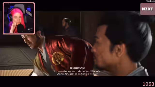 00:31:02Das Spiel beginnt mit einer beeindruckenden Einführungssequenz, die die Animus-Technologie und die Hauptfigur in der japanischen Sengoku-Zeit vorstellt. Die Protagonistin trifft auf Fürst Nobunaga und wird mit einem mysteriösen, schwarzen Mann namens Diogo konfrontiert. Die Streamerin versucht, Tötungen zu vermeiden, merkt aber schnell an, dass dies aufgrund der Spielmechanik und der Story-Anforderungen schwierig ist.