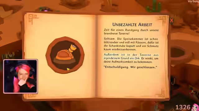 03:15:03Mit den Einnahmen aus Veras Experimenten wird die Taverne erweitert, eine Toilette und weitere Dekorationen werden angeschafft, um die Bewertung zu verbessern. Die ersten Experimente von Vera führen zu unterschiedlichen Ergebnissen: Wasser, eine brennende Substanz und ein Feuerschutzmittel. Vera ist begeistert von den gefährlichen Ausgängen und rekrutiert einen zufälligen Gast für weitere Experimente, bei denen Flüssigkeiten über den Kopf geschüttet und Fässer in Kohlebecken geworfen werden, was zu einer Explosion und einem Brand in der Taverne führt. Trotz des Chaos und der Zerstörung verbreitet sich die Nachricht von Veras Erfindungen und der Beteiligung der Taverne schnell. Die Taverne wird weiter ausgebaut, eine Küche mit Grill und Brotofen wird eingerichtet, und neue Gerichte wie Rattenspieße und Eintöpfe werden auf die Speisekarte gesetzt. Finanzielle Engpässe und die Notwendigkeit, mehr Personal einzustellen, bleiben jedoch bestehen, während die Taverne mit Schlägereien und weiteren unvorhersehbaren Ereignissen konfrontiert wird. Die Spieler müssen sich auf die Herausforderungen einstellen und die Taverne in Gucamuk zu einem erfolgreichen Reiseziel machen.