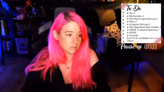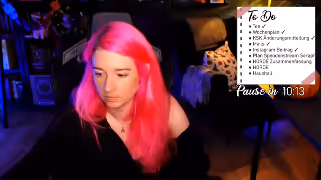00:45:50Nach der ersten 25-minütigen Pomodoro-Session zieht die Streamerin eine positive Bilanz: Sie hat ihren Wochenplan erstellt, eine KSK-Änderungsmitteilung online erledigt und ihr E-Mail-Postfach, das seit sieben Monaten nicht leer war, aufgeräumt. Die Community teilt ebenfalls ihre Erfolge, darunter das Einräumen von Wasch- und Spülmaschine sowie das Bemalen von Karten. Es wird erwähnt, dass die Streamerin gerade Essen einer neuen Firma testet, mit der sie möglicherweise zusammenarbeiten wird. Ein weiterer wichtiger Punkt ist die Vorbereitung auf das Avatar-Pen-and-Paper-Finale, das von Mittwoch bis Freitagabend stattfindet und emotional herausfordernd ist, da es den Abschluss einer Geschichte markiert. Für das nächste Jahr ist jedoch bereits eine neue Avatar-Staffel mit neuen Charakteren und teilweise neuen Mitspielenden geplant. Zudem wird auf den jährlichen Spenden-Stream für den Seraph-Preis hingewiesen, der voraussichtlich im Dezember stattfinden wird, um Fantasy-Autoren finanziell zu unterstützen.