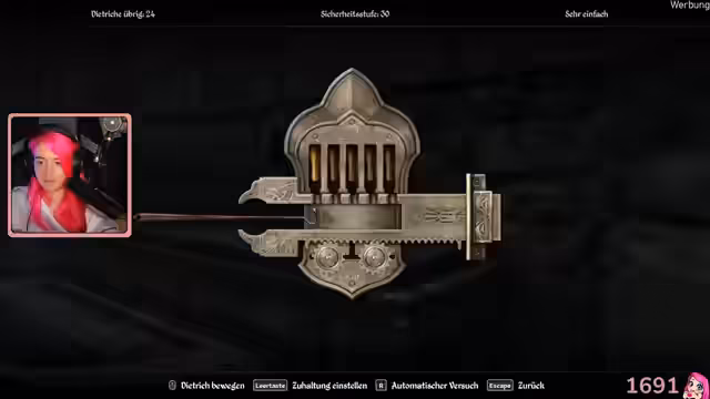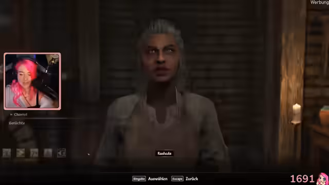 04:19:17Die Spielfigur befindet sich in einem Raum und nimmt verschiedene Gegenstände wie Bücher, Silberschalen, eine Karaffe und eine Waage an sich, um sie später zu verkaufen. Es wird angemerkt, dass die Kosten für die Übernachtung von 40 Goldstücken als zu hoch empfunden werden, was den Diebstahl rechtfertigt. Nach dem Diebstahl wird die Spielfigur müde und legt sich schlafen, um ihre Attribute zu verbessern. Dabei werden Schnelligkeit, Persönlichkeit und Intelligenz ausgewählt. Nach dem Schlafen versucht die Spielfigur, die Fäuste wegzustecken, um keinen Ärger zu provozieren, und sucht gleichzeitig nach einem bestimmten Typen. Dabei wird ein Licht bemerkt, das die Spielfigur verfolgt. Es wird auch erwähnt, dass sich in der Nähe angeblich die Liebesgilde befindet, während die Spielfigur eigentlich der Diebesgilde beitreten möchte. Die Suche nach der Liebesgilde gestaltet sich schwierig, da diese nicht auf der Karte eingezeichnet ist. Die Spielfigur möchte geklaute Sachen verkaufen und sucht jemanden, der dies ermöglicht, ähnlich wie in Teso. Es wird der Wunsch geäußert, Teil der Gilde zu sein, um die gestohlenen Gegenstände loszuwerden.