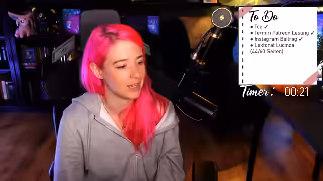 Aufgrund eines vollgestopften Arbeitsprogramms wurde ein langes Arbeitstrio anberaumt. Die Streamerin plant, von Nachmittag bis in den Abend hinein diverse Projekte zu bearbeiten. Auch zukünftige Event-Termine wurden kommuniziert, um die Chatter einzuladen.