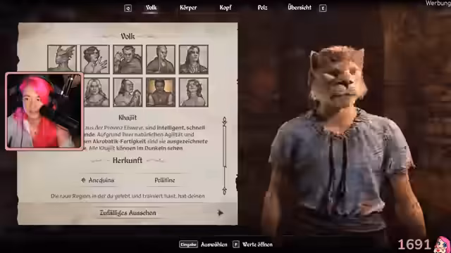 02:31:29Der Stream beginnt mit der Gestaltung eines grumpy Elf-Charakters, der immer etwas müde und angespannt wirken soll. Nach der Namensfeststellung 'Liese Grimmel' startet das Spiel im Kerker. Die Streamerin erkundet die Umgebung, stößt auf eine Leiche und versucht, Gegenstände wie einen Dietrich zu finden, um den Fluchtweg zu öffnen. Sie erhält den 'Tagebuch'-Questmarker, der den weiteren Spielverlauf leitet, und beginnt, die Grundlagen des Inventars und der Magie-Systeme zu erkunden.