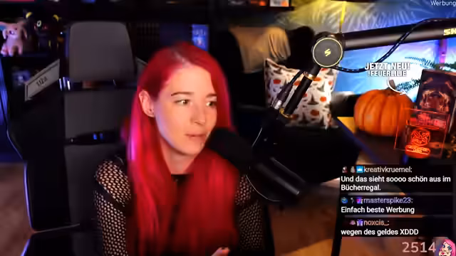 00:10:55Der Stream beginnt mit einer herzlichen Begrüßung der Community. Die Streamerin beschreibt sich selbst als gelegentlich etwas unprofessionell und teilt mit, dass sie sich selbst ein bisschen aufgegeben habe, aber froh ist, dass ihre Zuschauer noch da sind. Sie erinnert an den einziehenden Herbst und teilt ihre Freude über Halloween-Dekoration wie einen Kürbis und ein Hexenhutkissen. Ein zentrales Thema ist das bevorstehende Erscheinen des Buches 'Feuerlilie', das in neun Tagen veröffentlicht wird, und die Begeisterung darüber.