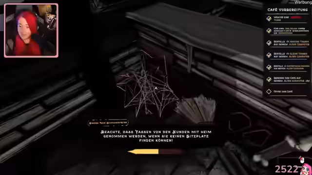 01:33:25Der Hauptteil des Streams widmet sich der Präsentation des Spiels 'My Little Cafe Nightmare'. Es wird ein Kaffeemanagement-Spiel im Halloween-Stil vorgestellt. Die Sprecherin, die das Spiel auf der Gamescom kennengelernt hat, startet die Demo und übernimmt die Leitung eines verwaisten Geister-Cafés. Die Anfangsphasen sind geprägt vom Chaos, da sie den Betrieb von der Reinigung bis zur Zubereitung von Kaffee allein meistern muss und mit den Launen der Geisterkunden zu kämpfen hat.