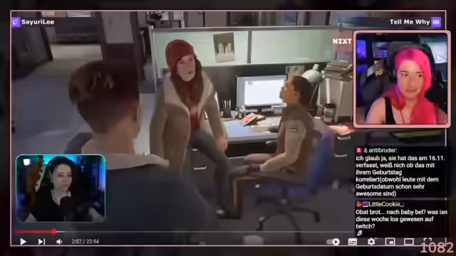 07:30:21Der Stream beginnt mit der Einführung ins Spiel Repo, bei dem Lucinda als Neueinsteigerin mit dem Tutorial vertraut gemacht wird. Die Streamerin kündigt an, dass das Spiel sehr lustig und chaotisch werden wird und Lucinda in verschiedene missliche Situationen geraten wird. Lucinda wird ermutigt, das Spiel zu entdecken, während die anderen Spieler schon Erfahrung mitbringen und humorvolle Vorhersagen darüber treffen, wie sie reagieren wird.