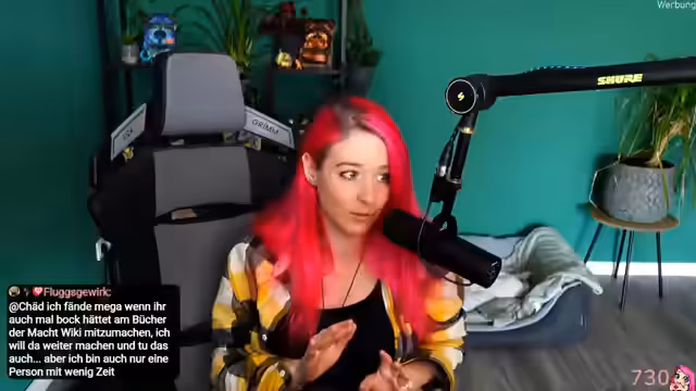 00:11:22Die Streamerin berichtet, dass sie sich derzeit intensiv mit der Fertigstellung eines neuen Buches befasst, das eine hoffnungsvolle Botschaft vermitteln soll. Um diese positive Ausrichtung zu ermöglichen, hat sie sich entschieden, für die Dauer des Schreibprozesses auf das Lesen von Nachrichten und die Nutzung von Social Media zu verzichten. Dieses Schritt begründet sie mit dem großen Einfluss des Weltschmerzes auf ihre Kreativität und der Notwendigkeit, sich konzentrieren zu können. Für sie ist es ein Privileg, sich kurzzeitig vom Weltgeschehen zurückziehen zu können, und sie bittet das Publikum, für diese Zeit Verständnis zu haben.