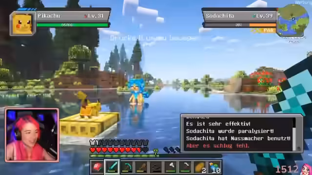 01:23:43Der Stream beginnt mit der Erkundung einer Minecraft-Welt, wobei der Fokus auf der Suche nach Ressourcen und Pokémon liegt. Die Spielerin erkundet verschiedene Biome wie Lavendelfelder und Magma-Gebiete, wobei sie auf Herausforderungen wie Creeper und das Fehlen von wichtigem Equipment wie einer Schere oder Eisen stößt. Sie findet ein Boot, das sie rettet, und stellt fest, dass Pikachu aus der Ohnmacht erwacht.