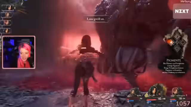 01:14:35Der Stream wechselt zum Gameplay von Claire Obscur. Nach einem kurzen Zwischenstop für eine persönliche Pause beginnt ein anspruchsvoller Kampf gegen einen Bossgegner. Die Streamerin taktiert mit ihrem Team, setzt Fähigkeiten wie 'Überladen' und 'Heilendes Licht' ein und kämpft mit hohen Schadenswerten und speziellen Status-Effekten des Bosses. Nach mehreren, teils erfolglosen Versuchen, wird der Boss schließlich besiegt, gefeiert und die Belohnungen analysiert.