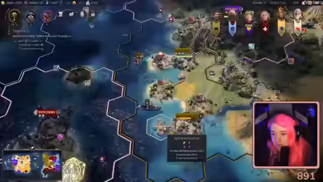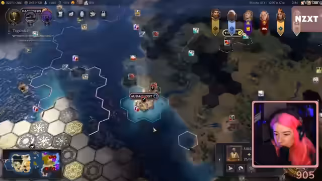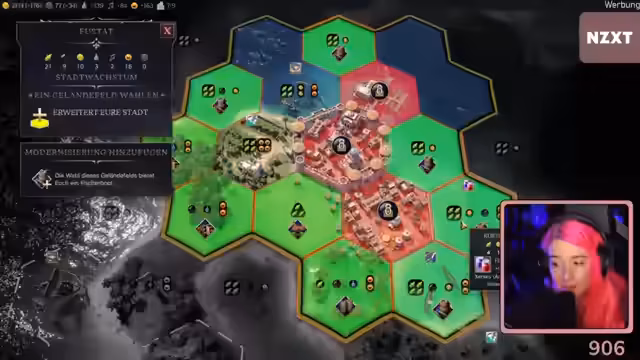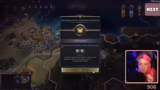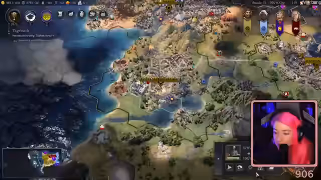 01:37:29Es bestehen Schwierigkeiten beim Versuch, eine Allianz mit einer benachbarten Zivilisation zu schließen, was zu Frustration führt. Der Fokus verschiebt sich auf die Ausbreitung der Religion des 'flutschigen Kois'. Missionare werden eingesetzt, scheitern aber häufig an Platzmangel oder der Anwesenheit feindlicher Missionare. Eine Handelsroute mit einer anderen Zivilisation führt dazu, dass deren Stadt automatisch dem eigenen Einfluss unterstellt wird.