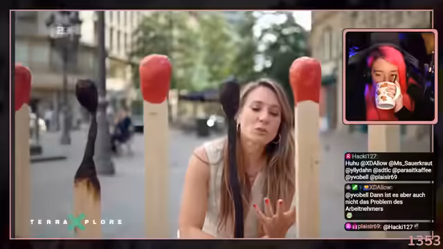 01:52:04In Frankfurter Innenstadt befragt der Streamer Passanten zu ihrem Stresslevel mit vorgehaltenen „Abgebranntseilern“. Die meisten bleiben nicht stehen – was den Alltagsstress ironisch bestätigt. Einige ordnen sich bei 6-8/10 ein und nennen Arbeitsüberlastung und fehlende Wertschätzung. Fatma betont, dass Dienst nach Vorschrift (pünktliches Feierabend ohne Überstunden) eine Stärke ist, kein Manko. Der Chat bestätigt dies als gesunde Haltung. Appell: Gesundheit geht vor Firmengewinn. „Eure Loyalität gilt eurer Gesundheit, nicht einem Chef.“