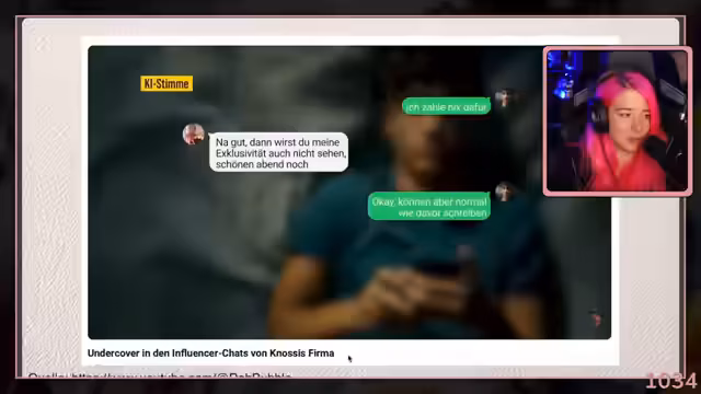 02:35:25Liza startet die geplante Reaction auf ein Video über Scams und schlechte Statements von Influencern, wobei der Fall von Knossi und der Plattform Fanblast zentral ist. Es wird kritisiert, dass Influencer wie Knossi sich von umstrittenen Geschäftsmodellen distanzieren, obwohl sie beteiligt sind und damit werben. Die Reaction beleuchtet, wie Fans durch vermeintlichen direkten Kontakt mit Prominenten betrogen werden sollen, indem professionelle Chatschreiber vorgespielt werden. Es folgt eine Diskussion über mangelnde Verantwortungsgefühle von Influencern, die häufig in Skandalen verwickelt sind, und wie sie sich herausreden, wenn es kritisch wird. Liza zeigt sich enttäuscht von solchem Verhalten und fordert mehr Transparenz und Verantwortung auf, während sie den Chat in die Analyse einbezieht.