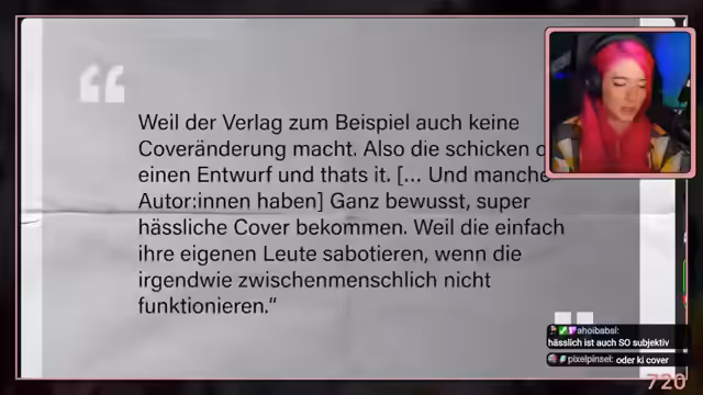 04:17:23Der Streamer breitet die Kritik auf die gesamte Buchbranche aus und spricht von 'zerplatzten Träumen' und Angst unter Autorinnen. Viele Autorinnen würden aufgrund der Arbeitsbedingungen und des Drucks aufhören zu schreiben. Es wird auf branchenübergreifende Probleme hingewiesen, wie den Druck, ständig liefern zu müssen, und die wirtschaftliche Unsicherheit im Schreibenberuf. Der Streamer kritisiert auch die unehrliche Darstellung von Vollzeitautoren im Internet, die Sicherheitsnetze verschweigen.