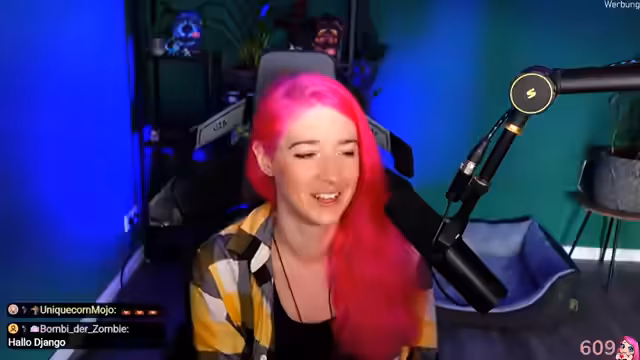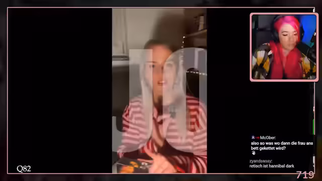 00:17:48Ein Großteil des Streams dreht sich um den Hund Django und seine possierlichen aber auch anstrengenden Eigenarten. Dazu gehören abenteuerliche Verdauungsprobleme, bei denen die Streamerin seinem Bauch massieren muss, um Furze herauszulocken. Auch das Thema, ob Tiere als Kinder betrachtet werden dürfen oder sollen, wird kontrovers diskutiert.