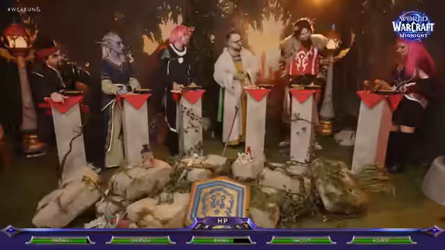 00:11:07Die Streamer präsentieren ihre für den Pen-&-Paper-Abenteuer vorbereiteten Charaktere aus der World-of-Warcraft-Lore. Freddy verkörpert Colbert, einen optimistischen Tauren mit einer dunklen Vergangenheit, da sein heiliger Kolben von den Bösen Hennel, Uga Mitashi und Papa Platte gestohlen wurde. Gnu spielt einen Priester, der als Untoter durch den Verlust seiner Freundin im versunkenen Tempel gezeichnet ist. Metachi gibt sich als Priester mit einer tragischen Background-Story zu erkennen, der von einem anderen Priester verletzt wurde. Ravian, ein Schurke, und Vorgia, ebenfalls eine Schurkin, vervollständigen die Gruppe, während Etienne als Pandaren-Mönch und Friedrich als Tauren-Krieger beschrieben werden.