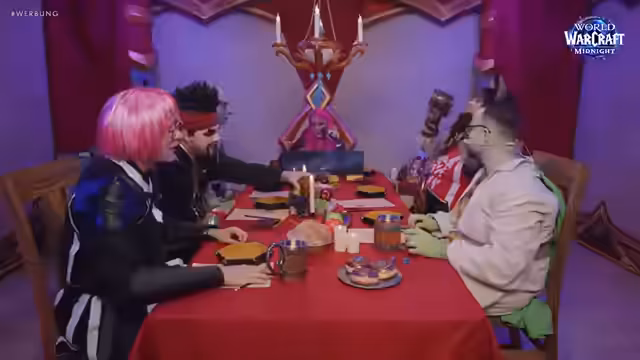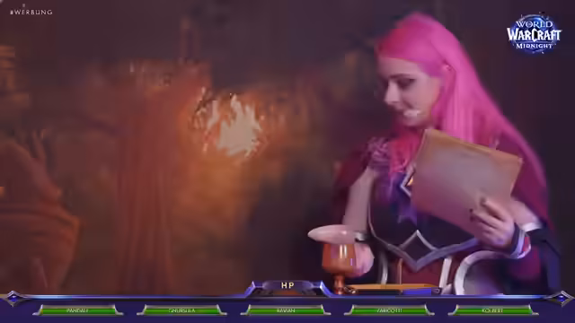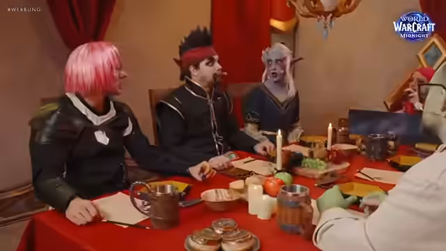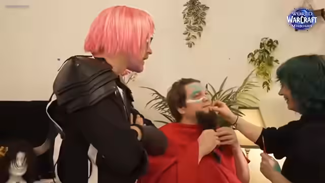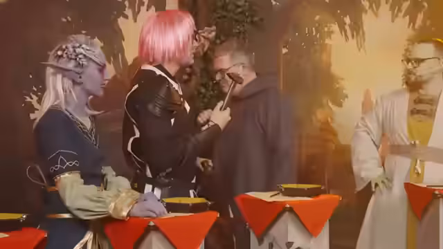 00:05:09Der Stream beginnt mit dem Betreten eines Backstage-Bereichs in Berlin, anlässlich des World of Warcraft: Midnight Releases. Hier werden die Streamer von Lisa Grimm in ihre Pen-&-Paper-Rollen eingekleidet. Freddy stellt seinen Charakter, den Tauren Colbert, vor, dessen Look durch einen aufwendigen Bart Make-up beeindruckend realistisch wirkt. Neben Freddy wird auch Gnu vorgestellt, deren Blutelfen-Outfit als entspannt und komfortabel beschrieben wird, im Gegensatz zu früheren, einschränkenden Rüstungen. Die Stimmung ist von Neugier und einer Mischung aus Nervosität und Spaß geprägt.