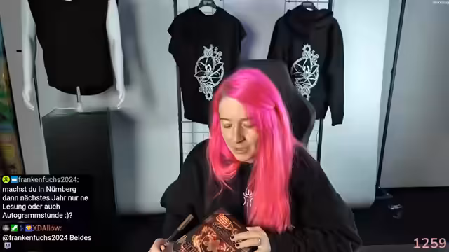 01:18:08Die Streamerin teile ihre Erfahrungen mit dem Signieren von Büchern und wie sie darauf achtet, dass jede Unterschrift individuell ist. Sie erklärt, wie sie ihren Stift wechselt und Bronze für die Widmungen verwendet. Liza Grimm erzählt auch über ihre persönliche Verbindung zu den Büchern, da ein signiertes Buch ihr Hintergrundbild ist und sie betont, wie schön es ist zu wissen, dass ihre Bücher Freude bereiten.