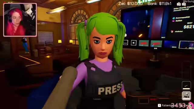 01:47:12Lucinda und Babsi sind dem Stream beigetreten, um Headliners zu spielen. Die Chat hat für Headliners abgestimmt, das als Lieblingsspiel der Streamerin gilt. Babsi hat das Spiel bereits gespielt, während es für Lucinda das erste Mal ist. Es wird ein Stream2Gether gestartet, obwohl es Bedenken hinsichtlich eines mysteriösen Bugs gibt, der die Zuschauerzahlen beeinflussen könnte. Es wird erwähnt, dass das Ziel, Partner zu werden, aufgrund der gesunkenen Zahlen möglicherweise nicht erreicht werden kann. Annabelle wird eingeladen, mitzuspielen. Die Streamerinnen hören sich im In-Game-Chat. Die Avatare werden angepasst. Es wird über die verschiedenen Fotokategorien im Spiel gesprochen, wie z.B. Fotos, die niemand wollte, und Darwin Awards für Journalisten, die mit dem Tod kokettieren. Es wird vereinbart, dass die Kameras mitgenommen werden sollen, falls jemand stirbt.