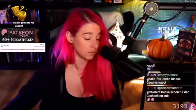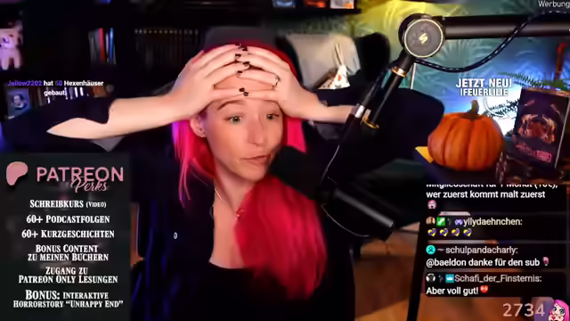 00:55:14Es wird die Abgabe des dritten Manuskriptbandes gefeiert und die Überforderung über die bereits erhältlichen "Feuerlilie" Exemplare ausgedrückt. Es wird sich bei dem Chat für die Unterstützung bedankt und betont, dass die Abgabe von Band 3 gefeiert wird. Eine von Fans erstellte Webseite namens Krimlin.de wird entdeckt, die als Hommage an die Krimmlins gestaltet ist. Rumkügelchen hat bereits 10 Mitgliedschaften der Stufe 1 generiert, die auf der Seite geclaimt werden können. Es wird die Großzügigkeit von Rumkügelchen hervorgehoben. Der Discord-Server hat nun mehr Emote-Slots, animierte Channel-Banner und Custom-Invite-Links. Es wird erwähnt, dass Raz heute Abend streamt und vor der Lesung bessere Audioqualität wollte. Es wird darüber gesprochen, dass es sich um die Abgabe von Manuskript 3 handelt. Es wird die Möglichkeit erwähnt, Bücher auf der Polaris signieren zu lassen. Es wird sich für die tolle Lesung am Freitag bedankt und erwähnt, dass über 100 Origami-Kraniche verteilt wurden. Ein Brief von einer Leserin der Premierenlesung wird geöffnet, der ein Lesezeichen enthält. Es wird über die Veröffentlichung von Büchern seit 2010 und das Streamen seit fünf Jahren gesprochen.