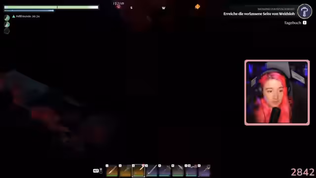04:44:42Eine weitere Quest verlangt, dass eine Truhe im mittleren Pfeiler einer Brücke gefunden wird. Der Streamer gerät in eine tiefe Verwirrung, da der Questmarker ständig zwischen 'Standort oben' und 'Standort unten' wechselt und er sich ständig in Löchern festfindet. Gemeinsam mit dem Chat wird die Suche nach dem richtigen Pfeiler und der versteckten Truhe durchgeführt. Schließlich wird die Truhe erfolgreich gefunden.