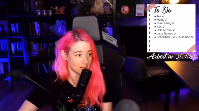 Es wurde eine entspannte Arbeitsphase durchgeführt, gefolgt von einer persönlichen Pause. Des Weiteren wurde eine neue Buchpräsentation gestreamt. Der Abend endete mit einem Einstieg in ein Abenteuerspiel und dem Abschluss einiger Quests.