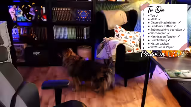 00:37:10Der Streamer startet ein Coworking-Segment mit einem 25-minütigen Timer, um konzentriertes Arbeiten zu fördern. In dieser Phase werden typische To-Do-Listen bearbeitet, darunter E-Mails, Discord-Nachrichten, Feedback für einen Intros-Komponisten (Esther), die Bestellung einer neuen Spülmaschine, die Erstellung eines Wochenplans, Klärung einer Teppichlieferung für das Schlafzimmer, Buchhaltung und das Packen von Kisten. Nach der Arbeitsphase folgt eine kurze Pause, in der der Streamer Erfolge teilt und sich auf weitere Aufgaben vorbereitet, wie die Erstellung eines Wochenplans und die Koordination von Umzugspackern. Die Diskussion dreht sich um Arbeitszeitmanagement, wobei angestrebt wird, die durchschnittliche Wochenarbeitszeit von 60-70 Stunden auf maximal 50 Stunden zu reduzieren.