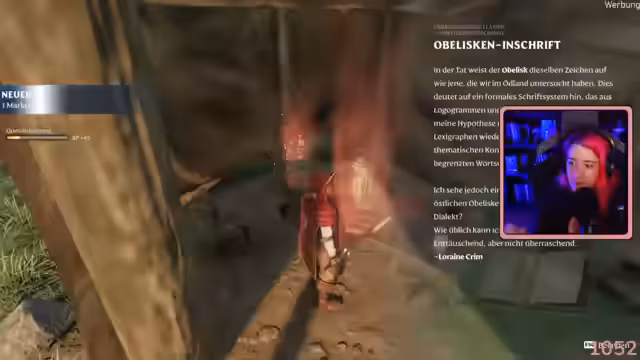 03:24:13Die Streamerin erwähnt Findelfuchs Wohnung in Entschrouded und macht sich auf den Weg in die Oberstadt. Sie erinnert daran, dass beim Aus- und Einloggen in Entschrouded alle Gegner wieder da sind. Sie wechselt ihre Ausrüstung und macht sich bereit für die Quest. Überraschenderweise findet sie die Stadt leer vor, ohne Gegner. Sie hatte mit mehr Widerstand gerechnet und bezeichnet den Stream als "vegetarisch", bevor sie doch noch auf Gegner trifft. Sie versucht, einen Weg über die Dächer zu finden und wird dabei angegriffen. Sie erreicht ein Gebäude und findet eine Schriftrolle, die den Magieschaden erhöht. Sie nimmt einen Miasma-Sack mit und betont, dass in Open-World-Spielen alle Wege irgendwie richtig sind. Sie entdeckt einen Bereich unter dem Boden und versucht, ihn mit einer Axt aufzubrechen, aber das Holz ist zu widerstandsfähig. Sie fühlt sich betrogen und belogen, als sie feststellt, dass der Bereich unerreichbar ist.