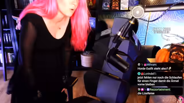 01:09:13Die Autorin kündigt eine spontane Modenschau an, da ihre EMP-Bestellung angekommen ist. Sie erwähnt ihr Placement mit EMP und dass sie fast vollständig von EMP eingekleidet ist. Sie präsentiert eine Strumpfhose mit Spinnwebenmuster und ein Outfit mit Trompetenärmeln, das sie als Hexen-Outfit bezeichnet. Sie fragt den Chat, ob sie das Outfit zu Horde anziehen kann. Sie zieht das Outfit an und präsentiert es dem Chat, der begeistert ist. Sie zieht das Outfit schweren Herzens wieder aus und fragt Res, ob sie bald mal ausgehen können, damit sie es anziehen kann. Sie zeigt einen Joker, den sie von Raz geschenkt bekommen hat, und probiert dann Pullover an. Sie beschreibt, dass sie oft Probleme mit Pullovern hat, da sie an ihrer Oberweite komisch sitzen. Sie spricht über ihren Körper und dass sie lange daran gearbeitet hat, stolz darauf zu sein. Sie erwähnt, dass sie einen Bauch hat, den sie nicht mag, und dass sie früher ihren Körperbau nicht mochte, da sie kein zierlicher Körpertyp ist.
