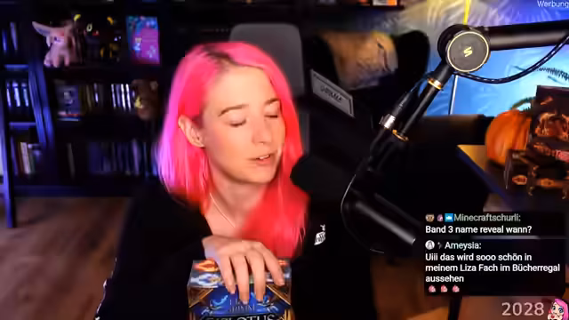 00:07:56Der Stream beginnt mit der Vorstellung des Buches 'Feuerlilie'. Begeistert zeigt die Autorin das Buch, das sie sehnsüchtig erwartet hat und nun endlich in den Händen hält. Sie beschreibt es als Perfektion und lobt besonders den Farbschnitt, der im Regal ein bündiges Erscheinungsbild ermöglicht. Die Widmung des Buches ist den Menschen gewidmet, die ihr gezeigt haben, wie wertvoll Freundschaft ist. Sie erwähnt auch ihren Verlobten in der Danksagung. Die Autorin freut sich über Vorbestellungen und kündigt an, dass im Oktober Cover und Titel von Teil 3 der Reihe veröffentlicht werden. Sie erklärt, dass mehr verkaufte Exemplare von 'Feuerlilie' die Wahrscheinlichkeit für einen vierten Band erhöhen würden. Die Autorin gesteht, das Marketing für Band 2 vernachlässigt zu haben und betont, dass die Werbelast hauptsächlich bei ihr liegt. Sie erwähnt zukünftige Projekte wie Horde und ein Geheimnis für die Polaris, während sie gleichzeitig an Teil 3 schreibt.