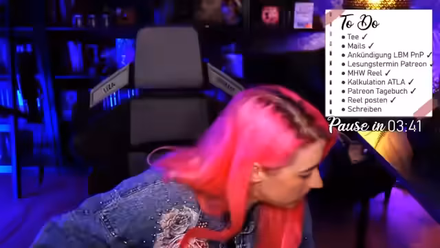00:26:26Der Stream wechselt in das Coworking-Format. Die Regeln werden erklärt: Es folgen Phasen von 25 Minuten konzentrierter Arbeit unterlegt mit Musik, die von 5-minütigen Pausen getrennt sind. Die Streamerin stellt ihre persönliche To-Do-Liste vor, die Aufgaben wie das Schneiden eines Reels, eine Kalkulation für ein Pen-&-Paper-Event und das Schreiben am neuen Manuskript umfasst.