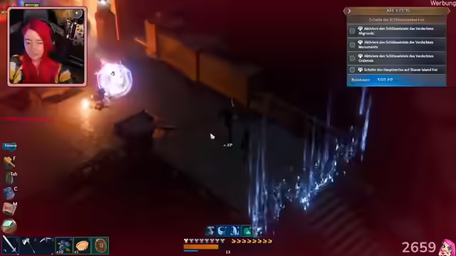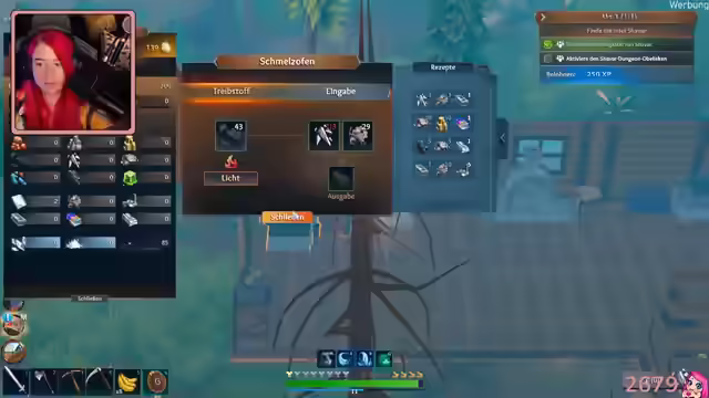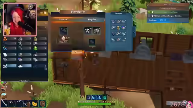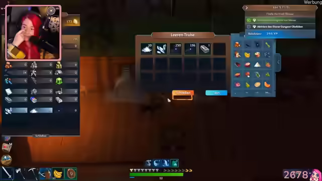 03:53:04Die Streamerin äußert Bedenken, sich zu sehr im Titan-Sammeln zu verlieren. Sie verläuft sich kurzzeitig und findet den Weg zurück mit Hilfe ihrer Partnerin. Die beiden stoßen auf weitere Brücken und Minen. Sie bauen eine Brücke, um einen Shortcut zu schaffen, und freuen sich auf die kommende "Feuerlilie"-Veranstaltung. Nach der Rückkehr zum Boot planen sie, ihre Ausrüstung zu verbessern. Sie haben neue Ressourcen wie Stein, Eisensplitter und Titan gefunden. Kalkstein wurde ebenfalls gesammelt. Die Streamerin erwähnt die Buchmesse und ein Pen & Paper-Event. Sie farmt Leben und stellt fest, dass Kalkstein für die Herstellung von Titanbarren benötigt wird. Es werden Kürbiskuchen gebacken und Lehm mitgebracht. Die Streamerin räumt die leere Truhe auf und äußert den Wunsch nach einem größeren Rucksack. Der Chat schlägt vor, alles abzufackeln, aber die Streamerin lehnt ab. Sie stellt fest, dass sie Platz in der leeren Truhe geschaffen hat und dass das Reh nicht brennt. Sie plant, die Warp-Portale zu untersuchen, benötigt aber dafür noch Ressourcen. Die Streamerin findet Weizen und überlegt, die Angel zu verbessern. Sie sucht nach Lichtsteinen und stellt Titanbarren her.