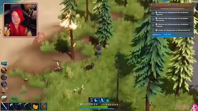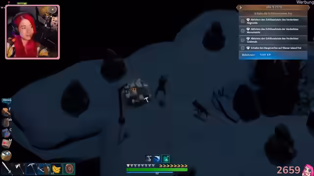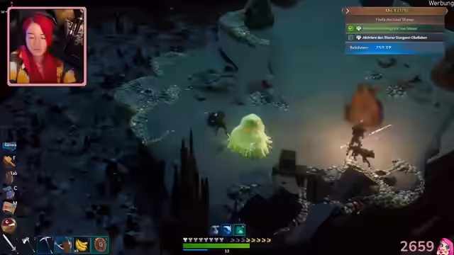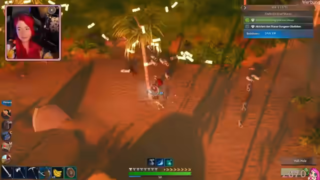 03:32:13Die Streamerin folgt Schreien und findet ihre Gegner, die sie besiegt. Sie entdeckt eine Tat und aktiviert diese, wodurch Schlüsselsteine freigeschaltet werden. Diese sind jedoch weit entfernt. Die Streamerin und ihre Partnerin nutzen eine Höhle, um zu den Leuchte-Sachen zu gelangen, und entdecken einen Tiger. Sie versuchen, sich dem Tiger zu nähern, haben aber kein Fleisch dabei. Die Streamerin baut Kalkstein ab und verstaut ihn in einer Leerentruhe. Sie erkundet eine Höhle und beginnt, eine Brücke zu bauen, um einen bestimmten Bereich zu erreichen. Es wird festgestellt, dass nicht genügend Halt vorhanden ist, um die Brücke fertigzustellen. Die Streamerin versucht, über eine Klippe zu bauen, wird aber aufgehalten. Sie äußert den Wunsch, einen Bereich mit Leuchtekraft zu erreichen, kann dies aber nicht und überlegt, die Entwickler zu kontaktieren. Die Streamerin kehrt zur anderen Insel zurück und findet Splitter. Sie wird von einem Gegner überrascht und getötet. Nach dem Wiederbeleben findet sie ihre Partnerin und erkundet mit ihr zusammen einen Unterweltwald, in dem sie Titan und Eisensplitter finden. Sie sammeln Pilze und entdecken ein Fläschchen. Die Streamerin findet weitere Ressourcen und Titan, während ihre Partnerin nach einem leuchtenden Ort sucht. Sie plant, das Feuer-Upgrade zu verbessern und den nächsten Dungeon zu erkunden.