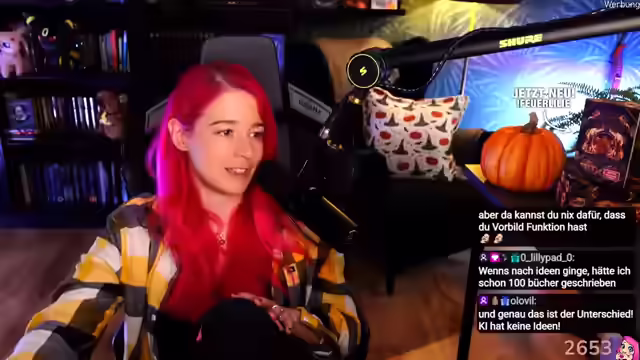 00:23:22Die Streamerin akzeptiert zunehmend, dass sie Künstlerin ist und gewisse Spleens hat, die mit dieser Kunst einhergehen. Dies war ein langer Prozess, da sie aus einem nicht sehr künstlerischen Umfeld kommt. Ihre Familie unterstützt sie, versteht es aber nicht ganz. Sie hat immer zu viele Ideen und kann diese vor ihrem Tod gar nicht aufschreiben. Es wird oft von LeserInnen mit ADHS berichtet, dass es ihnen bei ihren Büchern leichter fällt. Die Streamerin liebt Social Media und den Kontakt zu ihrer Community. Sie spricht über KI, Social Media, Bücher, die Buchbranche und ihre Existenzängste. Es wird erwähnt, dass die kurzen Kapitel ein Traum sind. Social Media ist eigentlich ein Vollzeitjob. Sie freut sich, dass ihre Bücher starke Emotionen auslösen und Menschen in andere Welten führen. Der dritte Band, "Feuerlilie", ist der stärkste der Reihe. Sie liest ihre eigenen Bücher sehr oft durch, aber nicht, wenn das Manuskript beim Verlag ist, um keine Fehler zu entdecken. Sie freut sich auf die morgige Lesung im Drachenwinkel in Saarland und auf die Frankfurter Buchmesse, wo sie wieder Pen & Paper spielen wird.