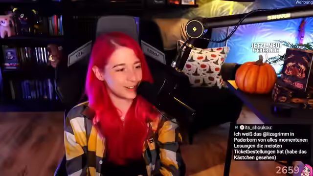 00:28:31Die Streamerin ist gespannt auf die Reaktionen zu "Feuerlilie". Sie spricht über die Schwierigkeit, Termine für Lesungen südlicher in Deutschland zu bekommen, da sie von Einladungen der Buchhandlungen abhängig ist. Sie wird von den Buchhandlungen eingeladen und ist davon abhängig, wer sie einlädt. Es ist surreal für sie, dass Leute über eine Stunde zu einer Lesung fahren. Sie wird Origami-Kraniche und Charakterillustrationen mitbringen. Es gibt eine Lesung in Ilmenau und eine gemeinsame Lesung mit Mikkel, Annabelle und Creepypasta-Punch in Hamburg. Es wird überlegt, eine Wohnzimmerlesung zu machen. Sie empfiehlt ab 15 Jahren für ihre Bücher. Die Streamerin findet den Chat toll und liebt es, dass miteinander gequatscht wird. Der Drachenwinkel bietet auch ein Online-Ticket für die Lesung am Freitag an. Sie gibt ein kleines Update zu ihrem Leben und ihrer Psyche und wird sich um 15 Uhr mit Mary treffen, um gemeinsam Lens Island zu zocken. Sie freut sich sehr auf die Lesung und lernt gerade Twitch als Ausgleich und Auszeit zu begreifen. Sie hofft auf ein wundervolles Coming Out von Mist Faru und freut sich über das Anvertrauen. Es wird versprochen, dass die morgige Lesung chill wird, da alle sozial inkompetent sind. Die Veranstaltungen dauern immer so zwei bis drei Stunden, aber meistens länger, weil viel gequatscht wird. Im Drachenwinkel wird nach der Lesung immer noch Pizza bestellt. Die Lesung in München ging auch so bis 23 Uhr. Sie liebt Lesungen und weiß es immer mehr zu schätzen.