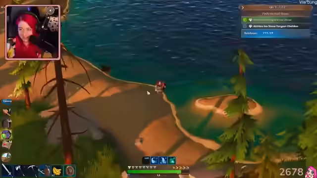 04:12:46Die Streamerin entdeckt, dass man mit Lichtsteinen feuern kann und stellt fünf Titanbarren her. Sie überlegt, was sie upgraden soll und entscheidet sich für die Spitzhacke, um blaue Materialien abzubauen. Dafür benötigt sie jedoch Hartholz, das sie auf einer nördlichen Insel findet. Sie äußert den Wunsch nach Ramen und isst Rocknudeln mit Gemüse. Die Streamerin findet Hartholz und schickt es mit der leeren Truhe nach Hause. Sie lässt Bananenbrot und Kürbispesto zubereiten. Nach der Rückkehr rüstet sie ihre Spitzhacke mit Titan auf. Sie plant, die Rune Bergarbeiter für die Hacke zu kaufen, um die Ressourcen beim Abbau zu verdoppeln. Die Sense soll ebenfalls verbessert werden, um mehr Ressourcen zu erhalten. Die Streamerin skillt verschiedene Fähigkeiten, darunter die Verdopplung der Essenz und erhöhte Heilung durch Sättigung. Sie isst eine Kürbispastete und stellt fest, dass sie gießen muss, wenn der Boden trocken ist. Die Streamerinnen planen, einen letzten Dungeon zu erkunden und segeln zu einem blauen Kreis auf der Karte. Sie einigen sich auf das mittlere blaue Loch und segeln darauf zu.