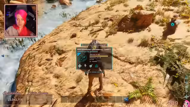 05:45:28Während des ARK-Spiels treten technische Schwierigkeiten auf, wie falsche Spawn-Punkte und Probleme mit Stammes-Einladungen. Der Streamer und Esther diskutieren Dino-Strategien (z.B. Velociraptoren) und erkunden die Spielwelt. Parallel dazu kündigt der Streamer interaktive Community-Challenges an, darunter gegenwärtige Schmink-Aktionen und zukünftige 'Versuchen nicht zu lachen'-Sessions mit Zungenbrechern. Die Zusammenarbeit wird als humorvoll und spontan beschrieben, wobei die Dynamik zwischen den Beteiligten betont wird.