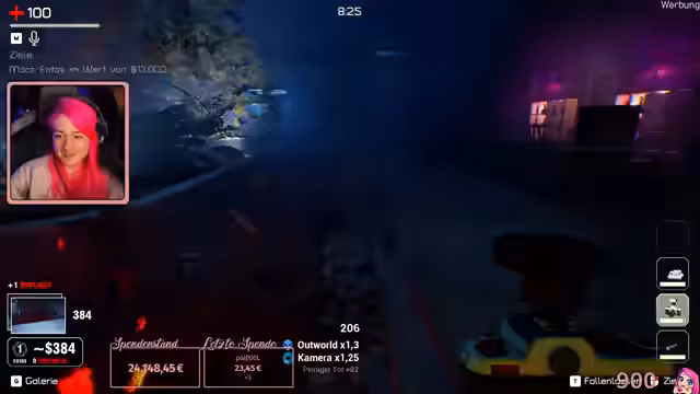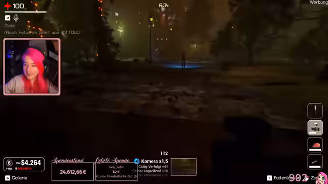 03:01:33Für 8.500 Euro Spenden ist ein Phasmophobia-Stream freigeschaltet, bei dem der Chat Einfluss auf Gameplay-Elemente nehmen kann. Zusätzlich wird eine Challenge-Lesung mit Raz angekündigt, bei der lustige Einschränkungen durch Spenden freigeschaltet werden. Ein Ark: Survival Evolved-Spiel mit Esther und Drachenkraut ist geplant, um Dinosaurier nach Community-Wünschen zu benennen.