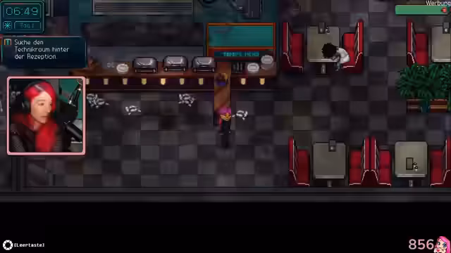 03:08:19Im Mittelpunkt steht die unvollendete und stark verbuggte Demo des Spiels 'The Lost Hotel'. Die Protagonistin versucht, als Hotelierin die betrieblichen Abläufe zu meistern, stößt aber auf zahlreiche technische Probleme. So ist der Küchenroboter defekt, Festplatten gehen kaputt und Dialoge führen in Sackgassen, aus denen sich die Spielfigur nicht befreien kann. Stream und Charakter geraten in eine Art Zeitschleife, was die Frustration über die Spielbarkeit erhöht. Der Versuch, das Spiel durchzumachen, wird nach einem besonders festen Bug aufgegeben.