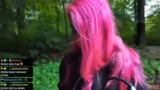 00:24:59Entgegen der Absagen beschließt die Streamerin, die Burgruine dennoch zu Fuß zu erreichen. Sie unternimmt eine beschwerliche Wanderung durch den Wald, die durch Regenwetter erschwert wird. Ihr Hund Django zeigt dabei wenig Begeisterung für das nasse Abenteuer. Auf dem Weg gibt es weitere kleine Unannehmlichkeiten, wie das Verheddern des Hundes und ein unangenehmes Gefühl im Schuh. Die Landschaft wird als idyllisch und grün beschrieben, was die Anstrengungen etwas mildert.