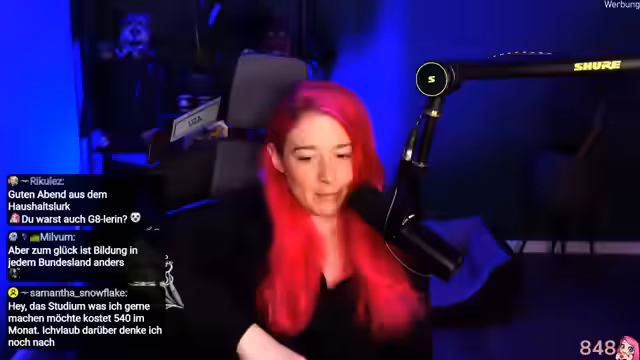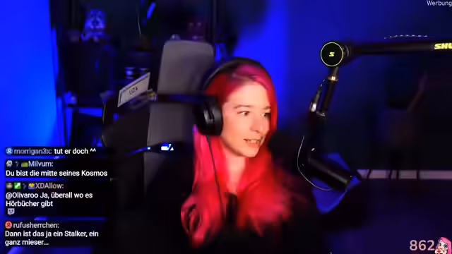 01:21:33Die Streamerin berichtet über ihre große Vorliebe für koreanische Dramen, insbesondere Reality-TV und Spielshows. Sie nennt die Serie 'Boyfriend on Demand' auf Netflix und erwähnt mit Bedauern die Absetzung der Serie 'Drama World', die sie für ihren Metahumor und das Durchbrechen der vierten Wand geliebt hatte. Sie wünschte sich, ihre eigenen Bücher könnten ebenfalls verfilmt werden, ist sich aber der geringen Chancen bewusst, insbesondere da sie deutschsprachige Autorin ist.