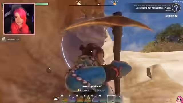 05:31:20Der Stream zeigt den Versuch, den Berggipfel zu erklimmen, um die Drachenhöhle zu erreichen. Der Aufstieg ist schwierig und rutschig, und die Streamerin nutzt eine Spitzhacke, um sich den Weg nach oben zu bahnen. Während des Steigens werden Kalkstein und Pflanzenfasern gesammelt. Gleichzeitig werden humorvolle Bemerkungen über ihre Online-Image und den "Eifelturm-Sterberin"-Spitznamen von Babsi gemacht.