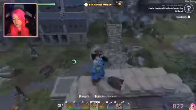 01:39:14Die Streamerin erkundet ein Gebiet in 'Entschrouded', das von tödlichem Miasma und Dunkelheit geprägt ist. Sie hat Schwierigkeiten, sich orientieren und zu sehen, was zu mehreren onomatopoetischen Reaktionen wie 'Oh, Aua.' führt. Sie stolpert über feindliche NPC, die sie tötet, und stellt sich moralische Fragen darüber, ob es sich um Kollateralschaden handelt. Sie versucht, eine verbotene Tür aufzumachen, die als Falle entpuppt ist. Sie muss auf den Sonnenaufgang warten, um sicher weiterzukommen, und wird dabei von Gegnern attackiert, die sie nur mit Mühe bezwingen kann.