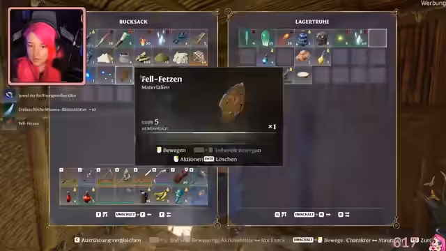 01:42:19Nach intensiver Suche und zahlreichen Kämpfen in der dunklen Umgebung gelingt es der Streamerin schließlich, die Handtrommel für die Bardin zu finden. Dieser Erfolg ist ein wichtiger Meilenstein in der Quest und bringt Erleichterung. Sie entdeckt die Trommel in einem Bereich, den sie zuvor übersehen hatte, und ist froh, den Kampf gegen einen starken Gegner dafür nicht antreten zu müssen. Nach dem Fund der Handtrommel kehrt sie zur Bardin zurück, um die Quest abzuschließen. Die Streamerin beginnt, ihre Ausrüstung zu verbessern und sich auf zukünftige Herausforderungen vorzubereiten. Sie zerlegt unnötige Waffen, um Platz im Inventar zu schaffen und Runen zu sammeln. Ein wichtiges Ziel ist es, den mittelgroßen Rucksack herzustellen, wofür sie Reptilienleder und Leinen benötigt. Sie muss dafür Materialien sammeln und die Spindel finden, die sich noch im alten Lager befindet. Die Streamerin plant, das Inventar besser zu organisieren und magische Kisten zu bauen, um den Crafting-Prozess zu erleichtern. Sie widmet sich der Flammenstufe und sammelt die benötigten Materialien wie Schleim, Kupfererz und Indigo-Pflanzen, um diese aufzuwerten. Die Unterstützung von 'Babsi', die ihr eine Bronze-Spitzhacke und -Axt schenkt, erleichtert die Materialbeschaffung erheblich. Die Streamerin ist entschlossen, ihre Ausrüstung zu optimieren und die Flammenstufe zu erhöhen, um in Enshrouded weiter voranzukommen und die Spielwelt effizienter zu erkunden.