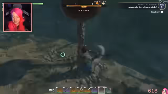 03:28:44Die Suche nach der Veredelungsschmiede und weiterer archaischer Essenz wird fortgesetzt. Die Streamerin überlegt, ob sie eine Insel kaufen soll, verwirft den Gedanken aber schnell wieder. Sie entdeckt, dass die Schmiede sich im Miasma befindet und muss sich durchkämpfen. Es wird viel Mycel gesammelt, obwohl es momentan nicht dringend benötigt wird. Die Quest 'Bitte des Schmieds' wird als aktiv markiert, und die Reise zum Zielort beginnt. Trotz der Dunkelheit und der Gefahren des Miasmas wird versucht, das Ziel zu erreichen. Die Streamerin versucht, eine Treppe zu bauen, um Hindernisse zu überwinden, was sich jedoch als schwierig erweist. Nach einigen Rückschlägen und dem Verlust der Leiche in einem Kampf, wird der Weg zur Leiche zurückverfolgt, um die Ausrüstung wiederzuerlangen. Es kommt zu weiteren Kämpfen, die jedoch erfolgreich gemeistert werden.