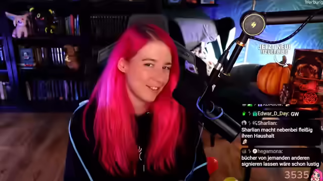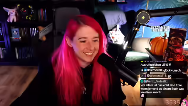 01:04:33Es ist ein besonderes Gefühl, ein Buch zu veröffentlichen, auf das man monatelang hingearbeitet hat. Der Tag des Erscheinens ist aufregend, doch das Feedback der Leser lässt noch auf sich warten. Umso mehr freut es mich, den Release hier auf Twitch mit euch feiern zu können, da ich viele Buch-Releases einsam zu Hause verbracht habe. Pixelpinsel hat uns einen Kürbisherz-Emote geschenkt, der wunderbar zur herbstlichen Stimmung passt. Ich bin überwältigt von der Unterstützung und freue mich, dass 'Feuerlilie' bereits auf Platz 15 der Fantasy-Bestseller bei Talia gelistet ist. Das ist unglaublich, da ich kaum Zeit hatte, Werbung dafür zu machen. Ich bin gespannt auf eure Meinungen zum Buch und freue mich auf den Lesezirkel diesen Monat.
