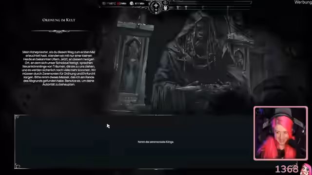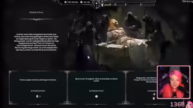 02:41:47Nach langer Überlegung und Diskussion mit der Community entscheidet sich die Streamerin, 'Worshippers of Cthulhu' zu spielen. Sie erinnert sich an die Demo des Aufbauspiels, die sie und der Chat vor etwa einem Dreivierteljahr sehr positiv bewertet hatten. Sie beschreibt das Spiel als entspanntes Aufbau-Game im Cthulhu-Stil und ist gespannt, welche Neuerungen es seit der Demo gibt. Der Start des Spiels wird von der Streamerin mit Spannung erwartet, und sie kündigt an, die Lautstärke anzupassen, bevor sie den Bildschirm teilt. Das Tutorial des Spiels wird gestartet, und die Streamerin beginnt, die grundlegenden Mechaniken zu erklären, wie das Zerlegen von Objekten und das Bauen von Gebäuden. Sie kommentiert humorvoll die Notwendigkeit, Häuser für die Arbeiter zu bauen, obwohl sie sich in einem Cthulhu-Kult befinden, und genießt die ästhetik des Spiels mit seinen grünen Lichtern und roten Feuern. Ein ritueller Turm mit gefangenen Tieren und einem Menschen führt zu einer humorvollen ethischen Debatte, ob man die Tiere oder den Menschen opfern sollte, wobei die Tiere als die 'Grenze' für die Streamerin dargestellt werden. Am Ende wird ein Opferaltar für den Gott gebaut, was die düstere Atmosphäre des Spiels unterstreicht.
