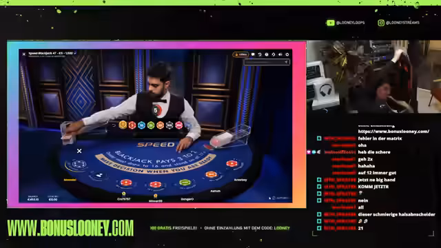 02:01:07Während einer Blackjack-Session kommt es zu massiven Verlusten und emotionalen Ausbrüchen. Der Streamer bedauert riskante Entscheidungen (z.B. Ziehen bei 16), beschimpft das Spiel als 'Hurensohn' und gibt zu, unter Druck schwache Entscheidungen getroffen zu haben. Aberglaube wird erneut thematisiert (z.B. 'Tost im Core' als Glücksbringer). Trotz vereinzelter Gewinne dominiert Frustration, was zum Spielabbruch führt.