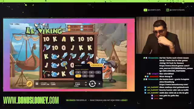 00:10:26Die Interaktion mit dem Chat gewinnt an Bedeutung, da Zuschauer aktiv Vorschläge für Spiele und Tipps geben. Der Streamer beantwortet Fragen, begrüßt neue Namen und diskutiert über Casino-Boni und Erfahrungen. Er testet weiterhin neue Spiele wie 'Devils Hotfire' und 'Book of Vikings' und hat sowohl positive als auch negative Erlebnisse. Während einige Slots wie 'Book of Vikings' vielversprechend sind und mehrere Boni auslösen, fühlen sich andere wie 'Le Pirate' oder 'Vampy Party' enttäuschend an, da sie nichts zahlten.