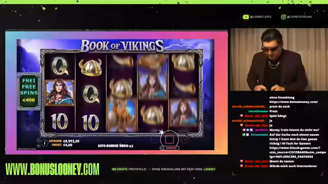 02:58:10Da der Wagering-Prozess bei Book of Vikings stockt, wechselt der Streamer zum Spiel Le Viking. Er erklärt, warum er die Turbo-Spins in den Bonusrunden deaktiviert, um die volle Auszahlungsrate zu gewährleisten. Gleichzeitig weist er darauf hin, dass der ursprüngliche Link bald überarbeitet wird und betont die Wichtigkeit des Bonus-Links auf bonuslooney.com, wo Zuschauer diverse Boni ohne Einzahlung finden können.