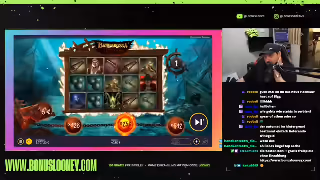 00:00:42Der Stream beginnt mit aufregenden Momenten, in denen hohe Multiplikatoren in einem Spiel erzielt werden, darunter ein 100x und ein 200x, was schnell zu einem Gewinn von 500x führt. Kurz darauf wird ein beeindruckender Gewinn von 4.020 Euro gefeiert, der als 'Bic hat gegönnt' bezeichnet wird. Inmitten dieser Glückssträhne werden Casino-Empfehlungen geteilt: Über den Bonuscode 'Ausrufezeichen Bonus' erhalten Zuschauer Zugang zu fünf Casinos mit 100 Freispielen ohne Einzahlung und einem sechsten Casino, Big, das 50 kostenlose Spiele bei Book of Ra nach der Anmeldung anbietet. Es wird auch über die Suche nach dem neuen Hexor-Spiel und einem Piraten-Bonanza-Spiel namens Barbarossa Revenge von Peter & Sons gesprochen, das für sein hohes Eskalationspotenzial bekannt ist.